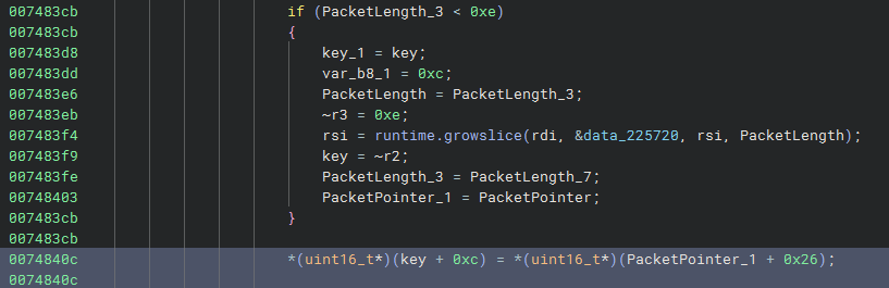 packetSource.Packets(), there is a reference to a packetDecoderwhich looks interesting. Looking at the docs, we start to suspect that a custom packet decoder is implemented and we need to find out how to send the correct packets.